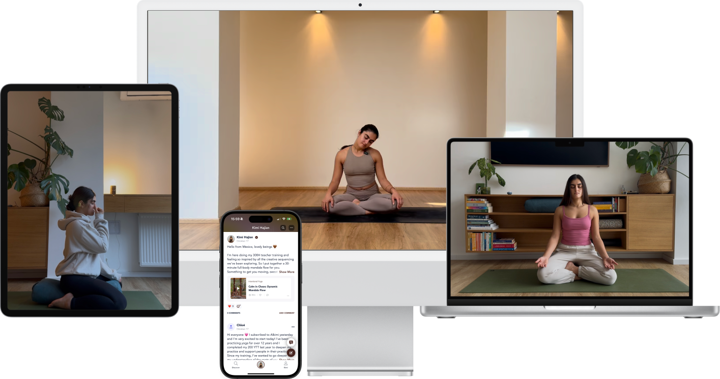 The Alkimi app is here so you can practice yoga intentionally wherever you are, however you feel. With 100+ on-demand videos, from dynamic asana flows to daily meditations and in-depth courses on yogic philosophy, you’ll find something that meets your yoga practice exactly where it's at.